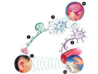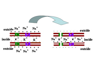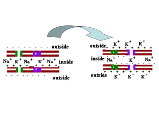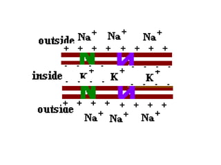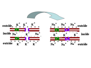 Nerve impulses occur through a chain reaction of chemical events within neurons. When a neurotransmitter binds to a neuron, it causes depolarization by allowing sodium ions to enter the axon. This is followed by repolarization where potassium ions exit to regain the charge imbalance. This cycle of depolarization and repolarization propagates down the axon until the neurotransmitter is released at the axon terminal to stimulate the next neuron. For a nerve impulse to continue, sodium and potassium pumps must actively transport ions back to their resting positions inside and outside the axon membrane.