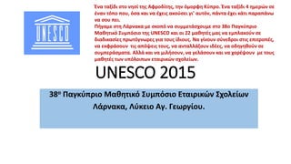 Μαθητικό Συμπόσιο της UNESCO και οι 22 μαθητές μας να εμπλακούν σε