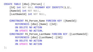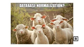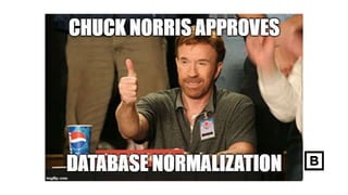 This document discusses database normalization and Anchor Modeling. It provides reasons for normalizing databases like reducing redundancy and improving integrity. It also lists common objections to normalization. The document then introduces Anchor Modeling as an agile technique for maintaining a highly normalized data model that is easy to evolve over time without downtime. Key aspects of Anchor Modeling like anchors, attributes, ties and knots are explained. Finally, examples are provided of how to model requirements and handle changes using this approach.