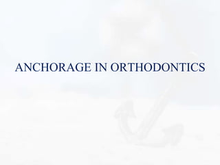 Anchorage refers to resistance to unwanted tooth movement when orthodontic forces are applied. There are various sources of anchorage, including teeth, bone, implants, and extraoral appliances. Anchorage preparation involves incorporating multiple teeth, using reinforcing appliances, and positioning teeth at right angles to forces to maximize resistance. Proper anchorage planning considers the anchorage demand based on the number and type of teeth to be moved and duration of treatment.