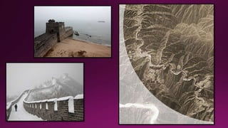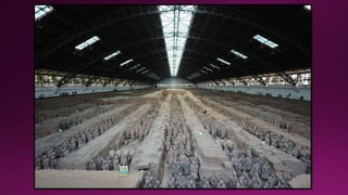 The document provides information about Ancient China from 220 BCE to 1912 CE, focusing on a comparison of the Qin Dynasty (221-206 BCE) and Han Dynasty (202 BCE - 220 CE). It discusses the geography, politics, religions, innovations, economies, and societies of both dynasties. The Qin Dynasty established a highly centralized government but was short-lived, while the Han Dynasty embraced philosophies like Confucianism and lasted longer, expanding China's territory and establishing many cultural and technological advancements.