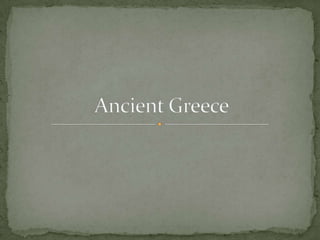 The document summarizes the history and culture of ancient Greece. It describes the Minoan and Mycenaean civilizations, the evolution of Greek city-states like Sparta and Athens around 750 BCE, and the shift from monarchy to aristocracy to oligarchy. It also outlines Greece's golden age under democracy in Athens and the influence of philosophers like Socrates, Plato, and Aristotle. The culture had a lasting impact and helped form the Hellenistic civilization after conquest by the Macedonian King.