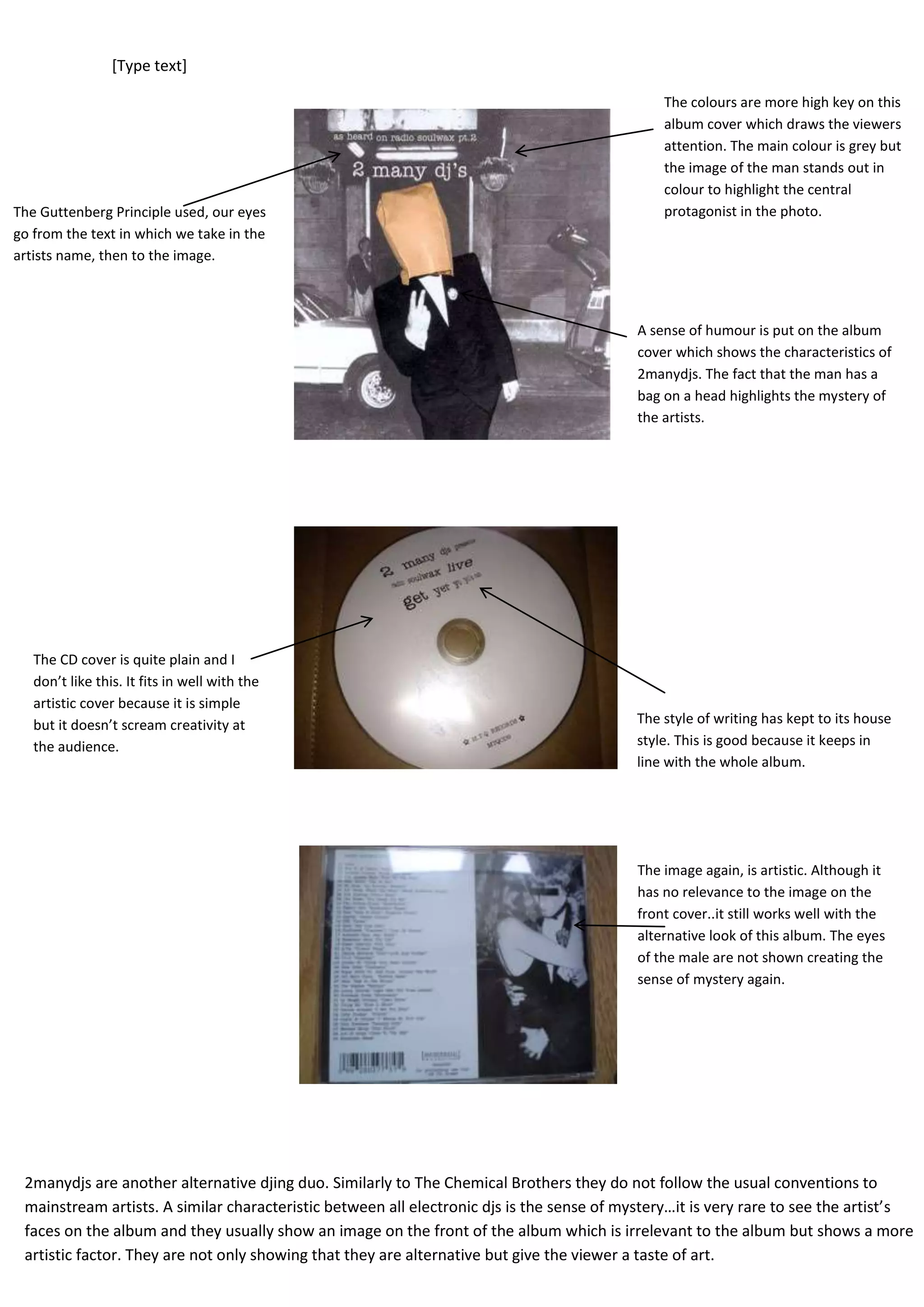 The album cover draws attention with high key colors and features a central image of a man standing out from the gray background. It conveys a sense of mystery through a bag over the man's head, consistent with the artists' style. The CD cover is plain but fits with the artistic style and simplicity of the album overall. The back cover image also features an artistic, mysterious male figure without visible eyes to maintain intrigue.