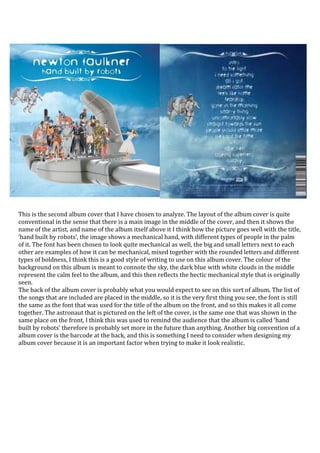 - Features a mechanical hand holding different people, relating to the album title "Hand Built by Robots".