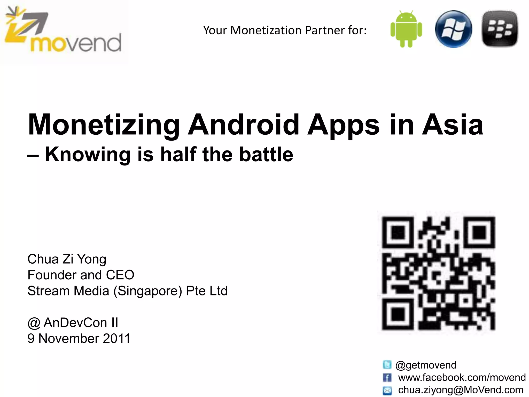 The document discusses monetizing Android apps in Asia. It notes that Asia is a viable market due to the large number of mobile users, many of whom access the internet primarily through their mobile devices. However, entering the Asian market presents challenges due to fragmentation across languages, cultures, infrastructure and regulations in different countries. To succeed, developers need to understand their target users and focus on key markets that fit their sales strategy and address these issues of fragmentation.