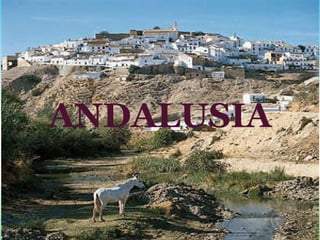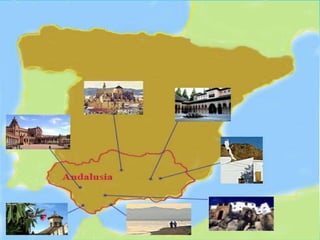 SITUACIÓCom veureu al mapa següent... Andalusia està situat al sud de la península Ibèrica.La seva frontera septentrional està marcat entre les Muntanyes de Sierra Morena. A l'oest, el riu Guadiana separa Andalusia de Portugal a la província de Huelva. Andalusia cobreix 87.268 km/2 i és considerada la segona Comunitat Autònoma més gran d'Espanya.