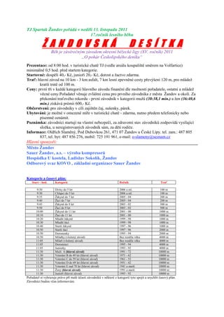 Prezentace: od 8:00 hod. v turistické chatě TJ (vedle areálu koupaliště směrem na Volfartice)