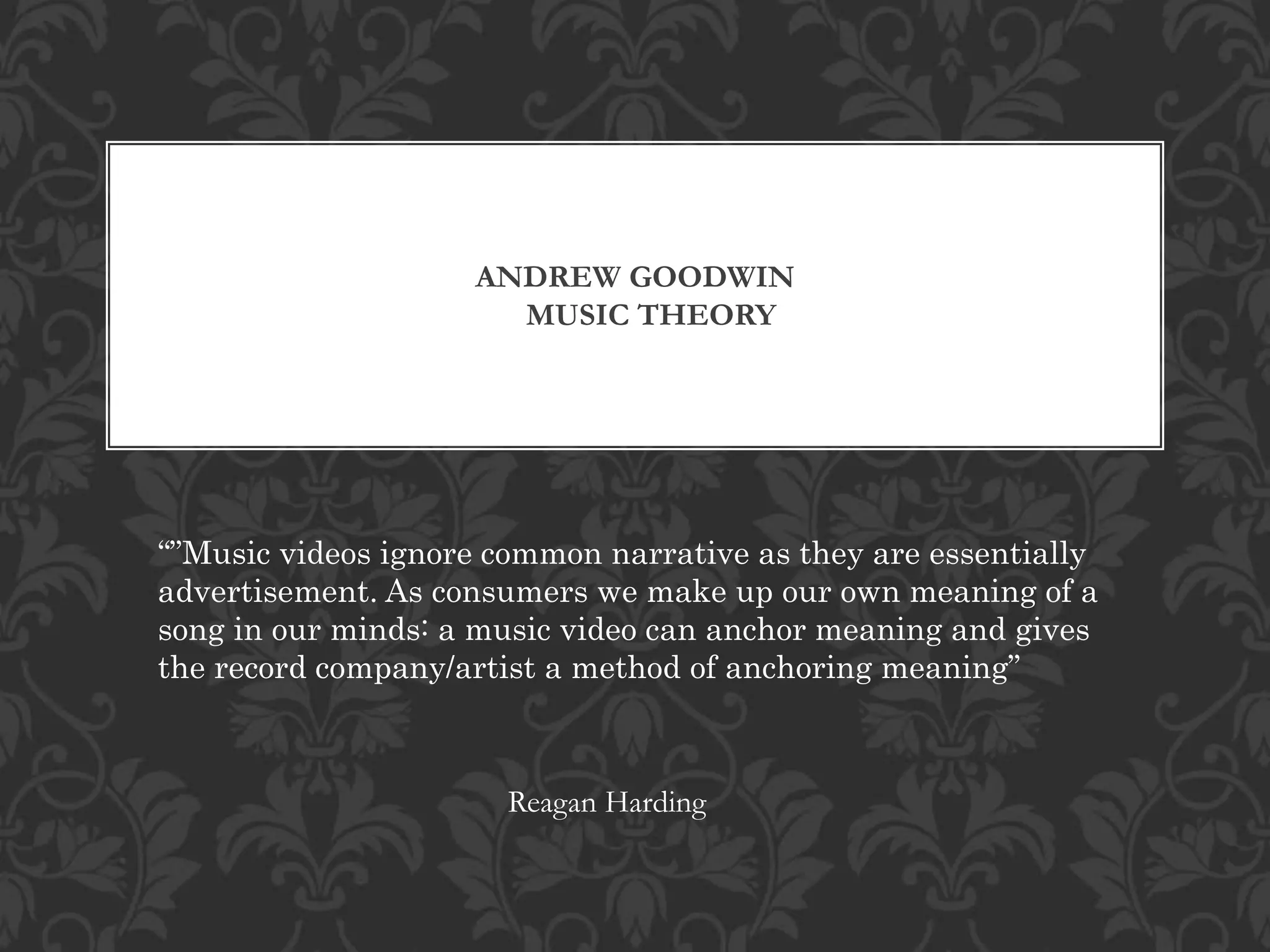 - Andrew Goodwin identified five key aspects of effective music videos: showing the sound through "thought beats"; using narrative and star performances; crafting the star image; relating visuals to the song; and technical elements like editing, effects, lighting and camerawork.