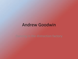 The document discusses several common characteristics and conventions of music videos. It notes that music videos often demonstrate genre characteristics, such as a stage performance for metal videos or dance routines and flashy displays of wealth for rap videos. It also discusses common visual techniques like voyeurism, references to looking through props, and the relationship between visuals and lyrics. Record labels also influence visual styles and demand close-ups of artists with recurring visual motifs. Intertextuality between music videos and other media is also frequently used.