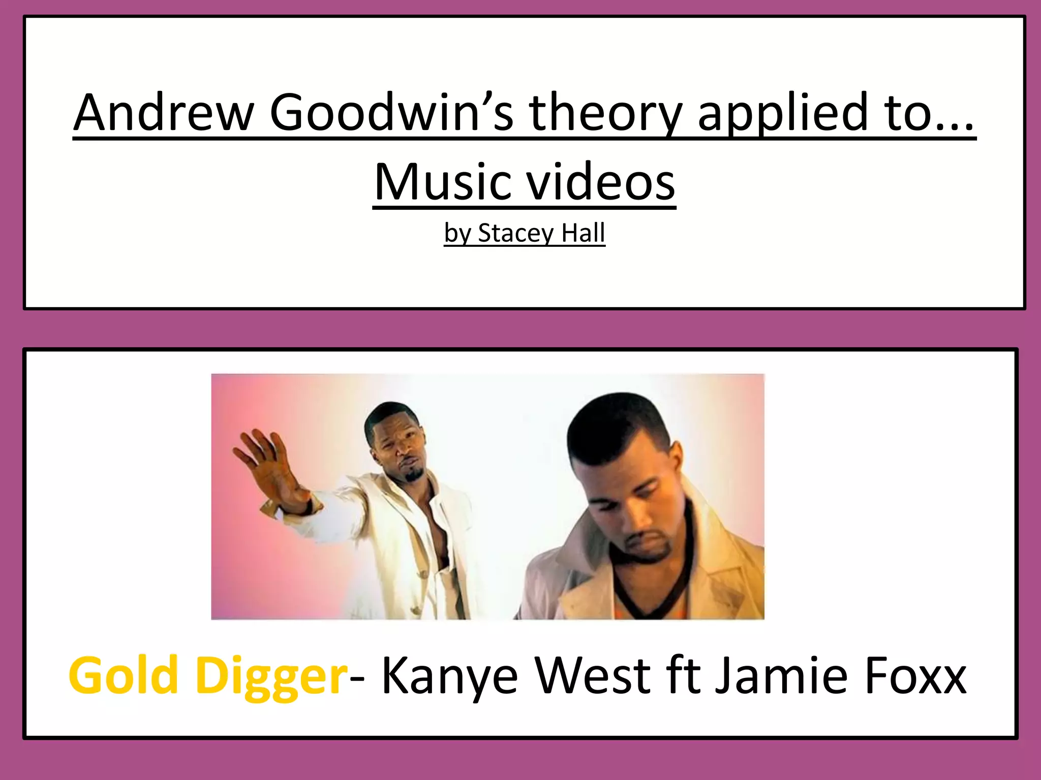 This document analyzes Kanye West's music video for "Gold Digger" using Andrew Goodwin's theory of key aspects to look for in music videos. The analysis finds that the video has a strong relationship between the lyrics and visuals, illustrating the lyrics. It also has a relationship between the music and visuals, with the editing and shots amplifying the beat. There are many close-up shots of Kanye West and Jamie Foxx, showing their star images. Elements of voyeurism and the male gaze are present through sexualized shots of scantily-clad women. In general, the video is found to be a clear example of the aspects Goodwin identified as common in music videos.