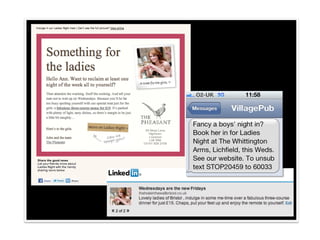 This document discusses digital innovation and how connecting elements can drive 80% of results with only 20% of effort. It mentions pandas, penguins and Venice, and describes the content as compelling, relevant and easy. Contact information is provided for connectingelement.co.uk on digital and social media.