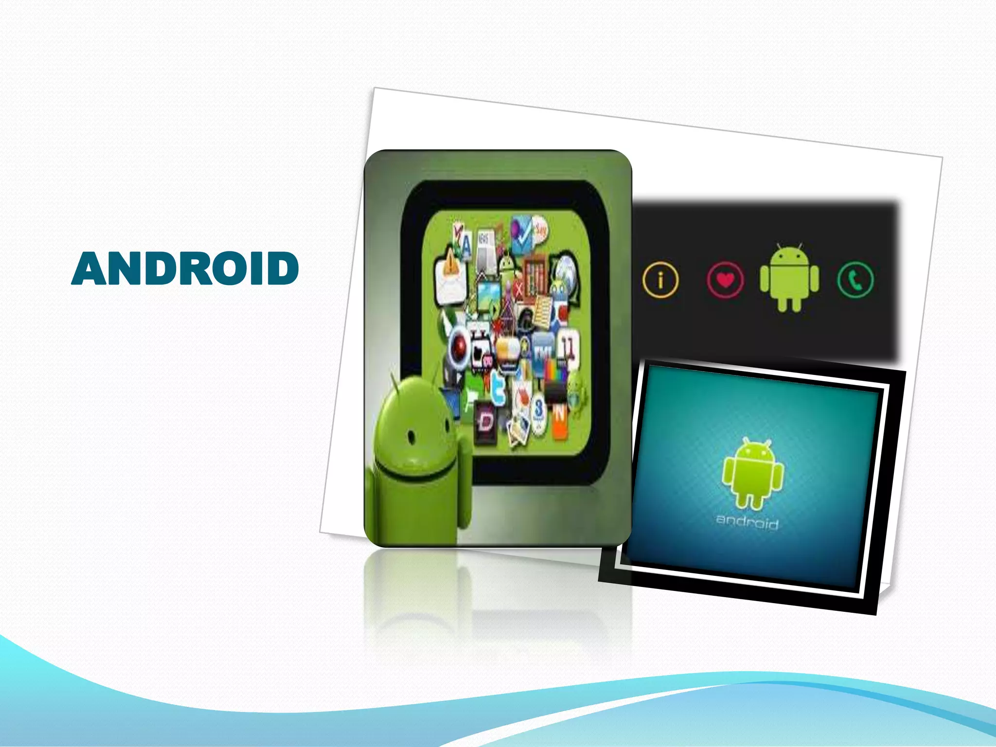 Android is an open source software stack that includes an operating system, middleware, and key applications. It uses a Linux kernel and is based on the Java programming language. The latest version is Android 4.0 Ice Cream Sandwich, which combines features from previous Android versions. Android allows applications to be written using Java and includes core applications like email, SMS, maps, and a browser. It uses the Dalvik virtual machine and supports features like Bluetooth, GPS, and media playback depending on hardware.