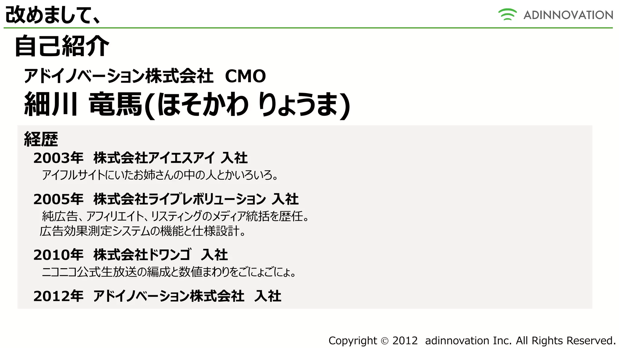 Copyright 2012 adinnovation Inc. All Rights Reserved.
