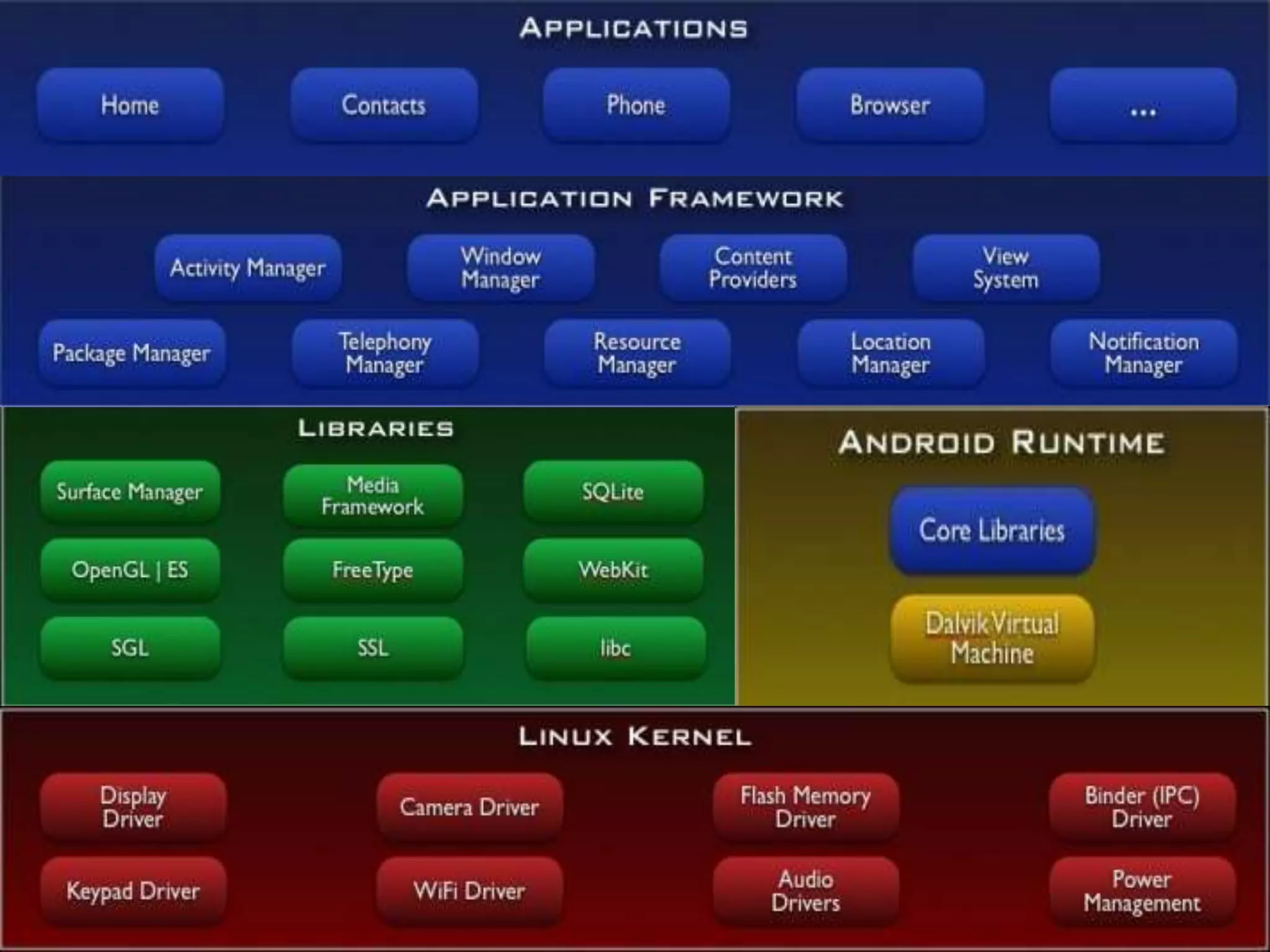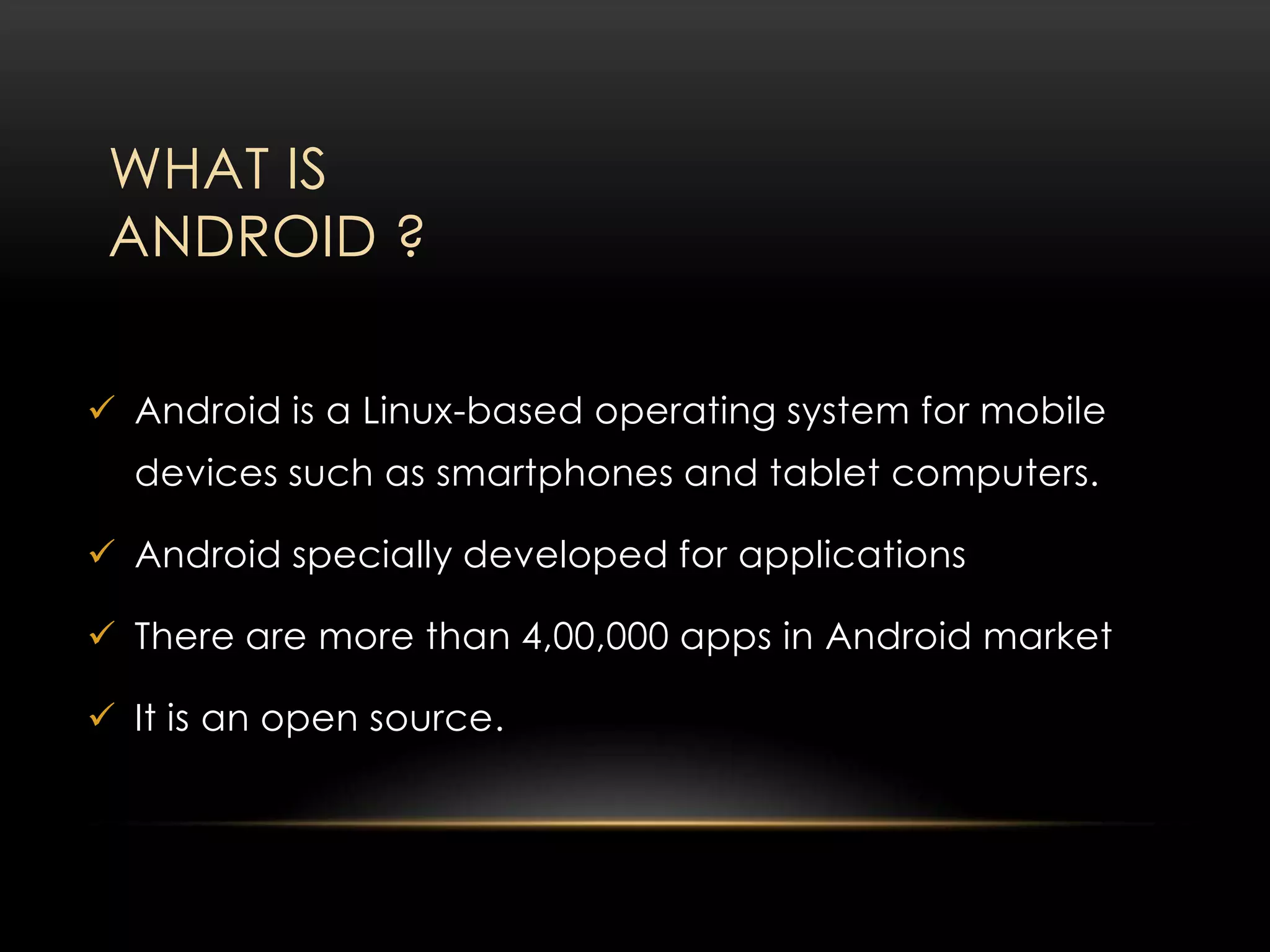 This document provides an overview of the Android operating system, including its history, evolution, and key versions. It discusses how Android was developed by Android Inc. and later acquired by Google. The document outlines the growth stages of Android from version 1.1 to the current version 4.4 KitKat. It describes the core components and structure of the Android framework, including the Linux kernel, Dalvik virtual machine, core libraries, and app functions. The document also compares Android to the iOS operating system and discusses the Google Play Store for downloading Android apps.
