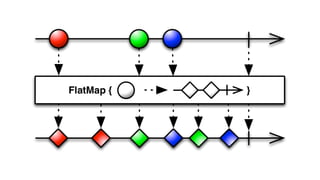 Документ описывает использование реактивного программирования в разработке Android приложений с интеграцией RxJava. Он охватывает концепции, такие как управление состояниями, обработка пользовательского интерфейса и применение observable для управления данными. Также упоминаются полезные операторы, такие как debounce и combineLatest, для улучшения производительности и уменьшения нагрузки на сервер.