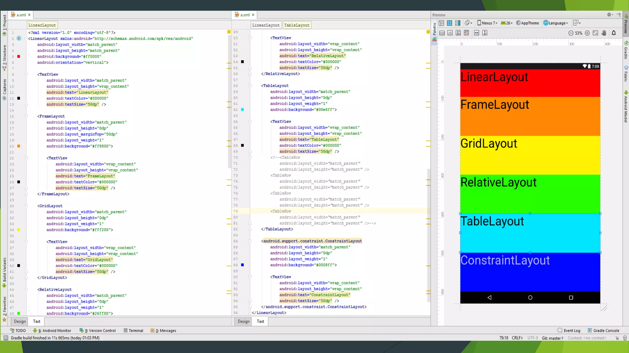 - Different types of layouts that can be used in an Android app like RelativeLayout, LinearLayout, etc.