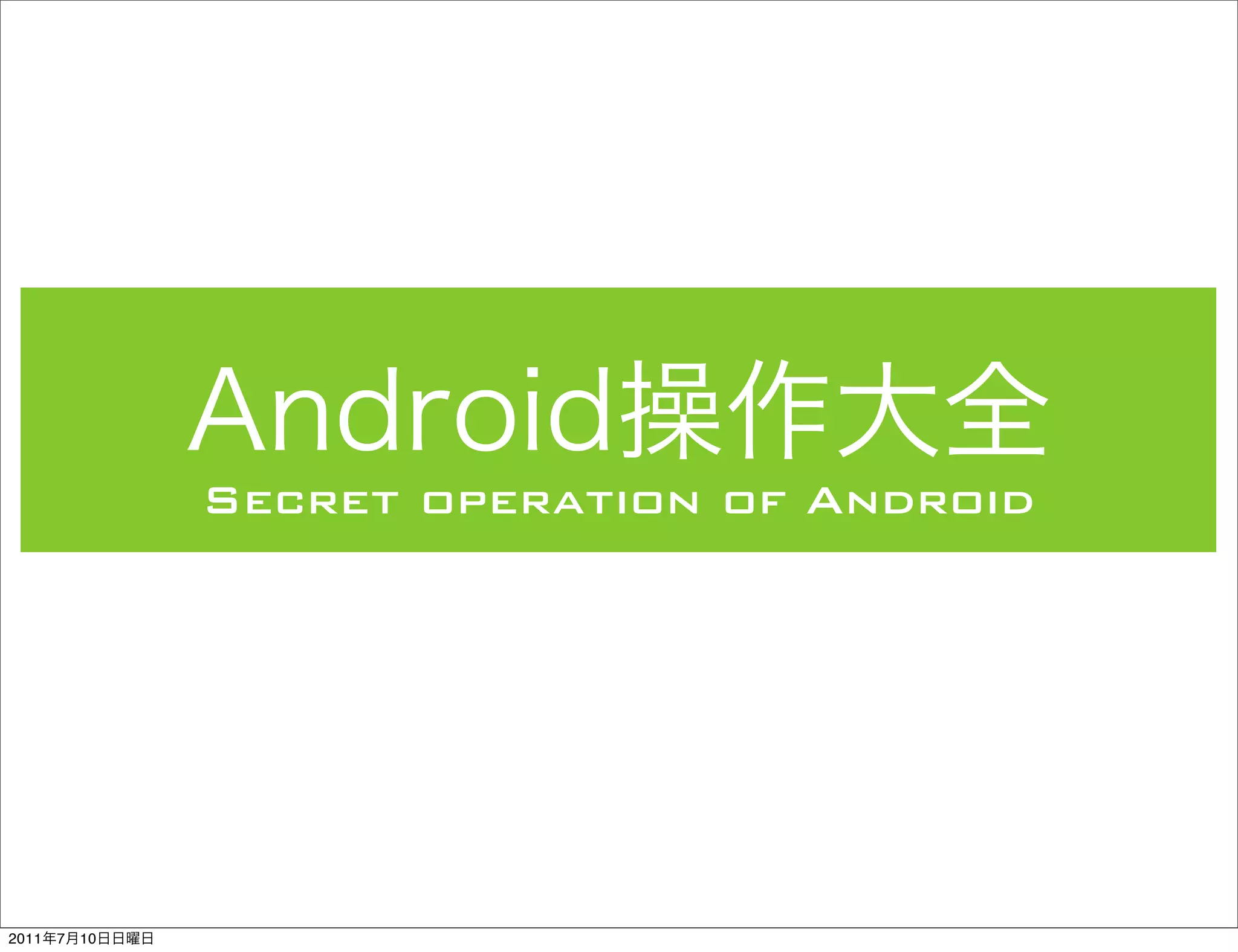 The document discusses the secret operation of Android and lists several Android apps such as Twicca, Google Maps, and ATOK that were running in the background on July 10, 2011 without the user's knowledge. It suggests that Android runs various apps and services secretly in the background on users' devices.