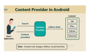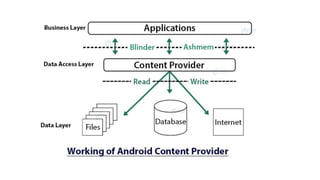 3) Content providers allow data sharing between applications by hiding database details.