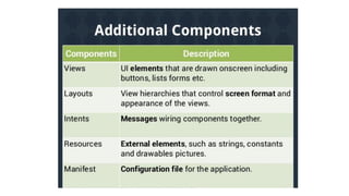 This document discusses the core application components in Android: