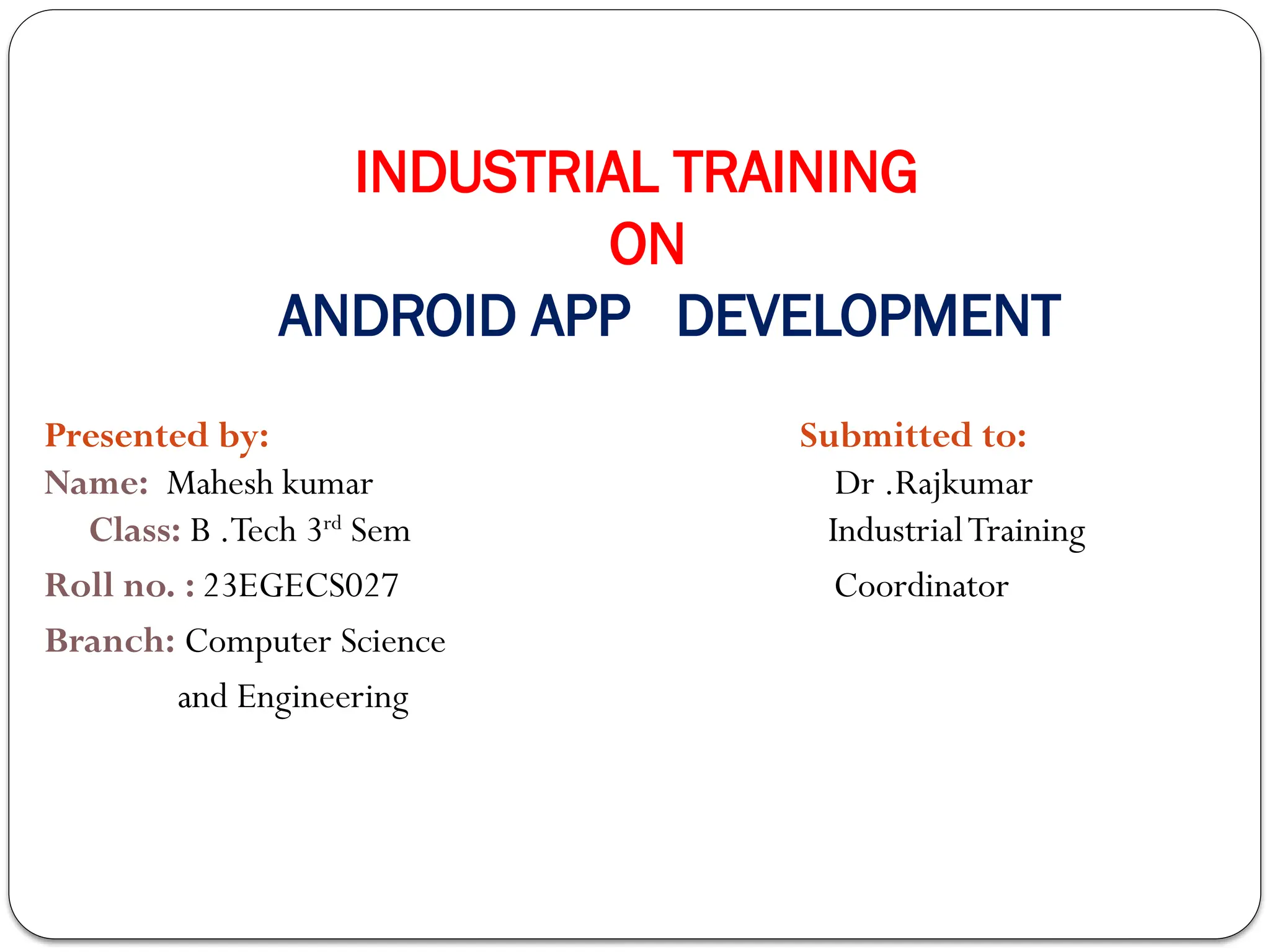 Name: Mahesh kumar Dr .Rajkumar