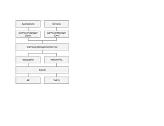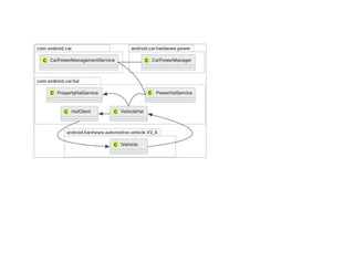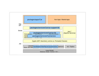 1. It provides an overview of the Android Automotive architecture and key system services like the Car System Service.