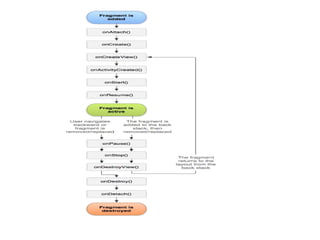 This document provides an overview of key Android development concepts and techniques. It discusses fragments, the support library, dependency injection, image caching, threading and AsyncTask, notifications, supporting multiple screens, and optimizing ListView performance. The document also recommends several popular Android libraries and open source apps that demonstrate best practices.