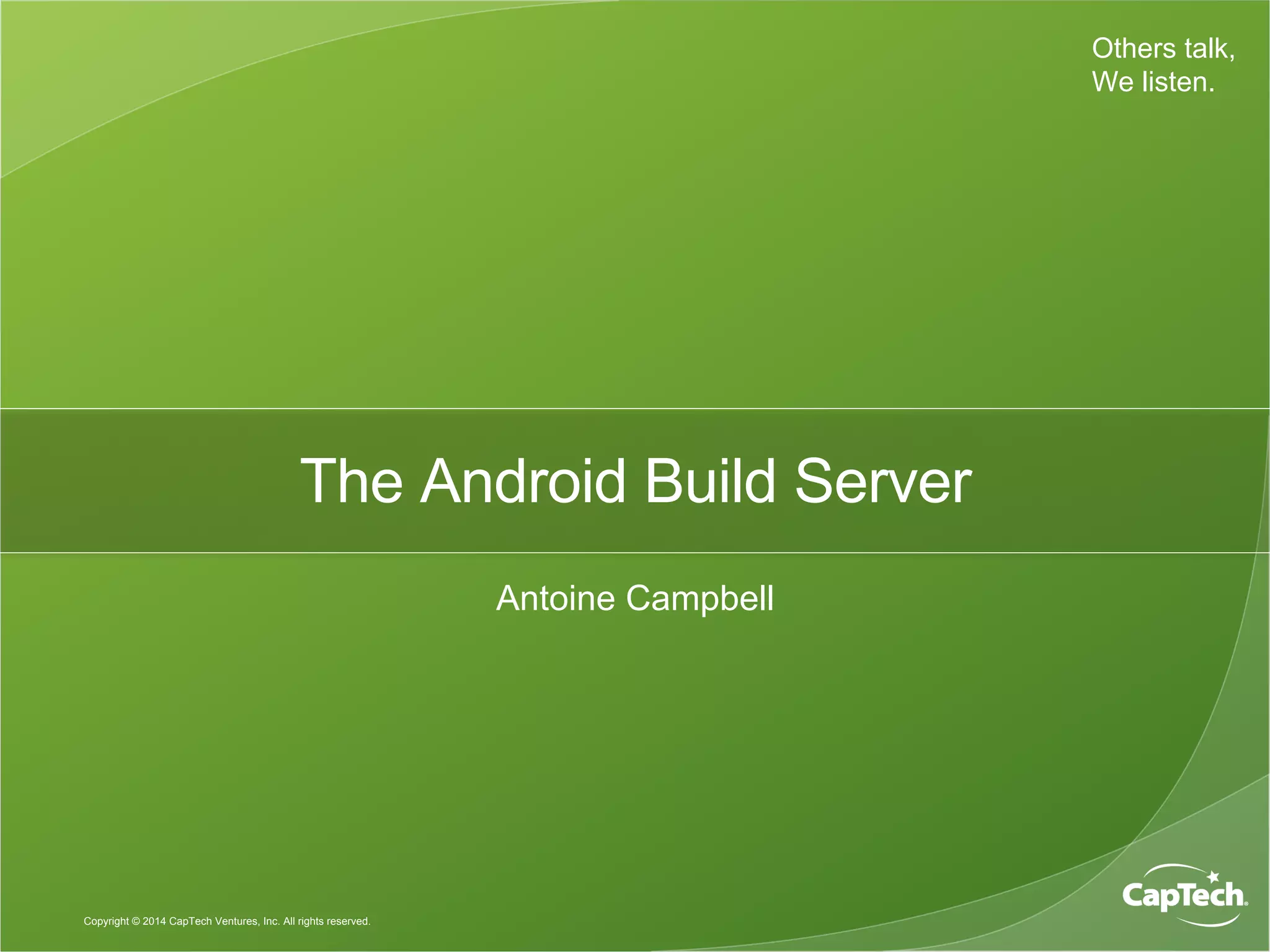 The document discusses the setup and configuration of an Android build server using Jenkins, focusing on automated testing and deployment. It details the challenges encountered, the technologies utilized—such as multi-configuration projects and various plugins—and the demonstration of a build machine. The document aims to provide insights into the experience of building an efficient testing environment for Android applications.