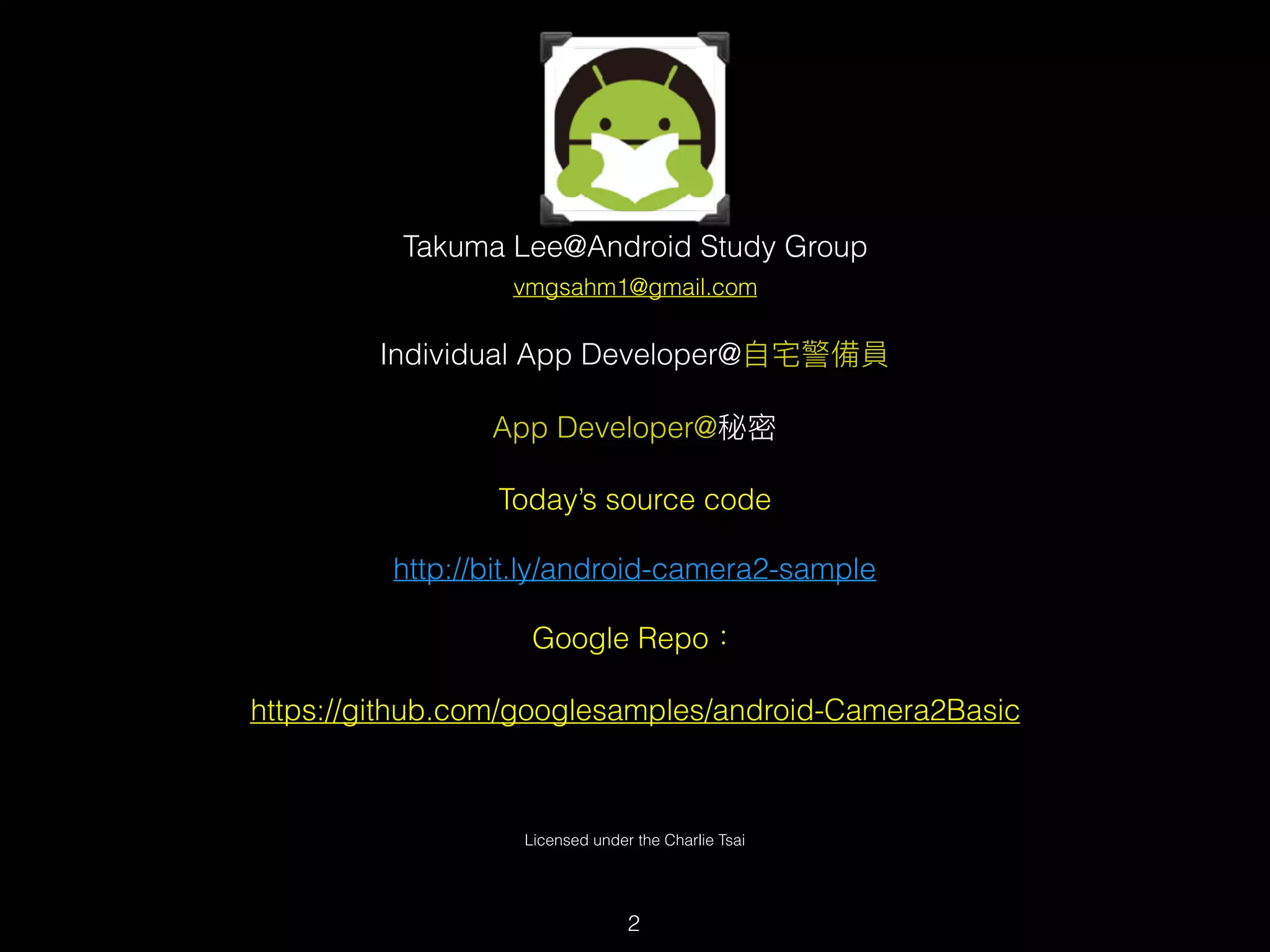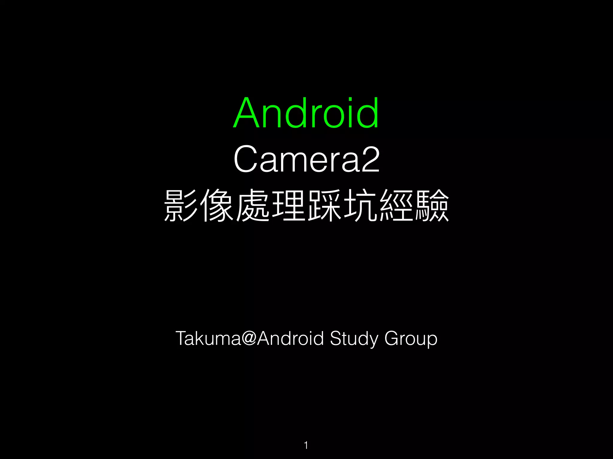 This document summarizes Takuma Lee's presentation on camera2 API experience in Android. It discusses setting up the camera, preview callbacks, face detection, common issues, and provides demo code. The presentation was given to the Taiwan Android Developer Study Group, which is a community of Android enthusiasts that meets weekly.