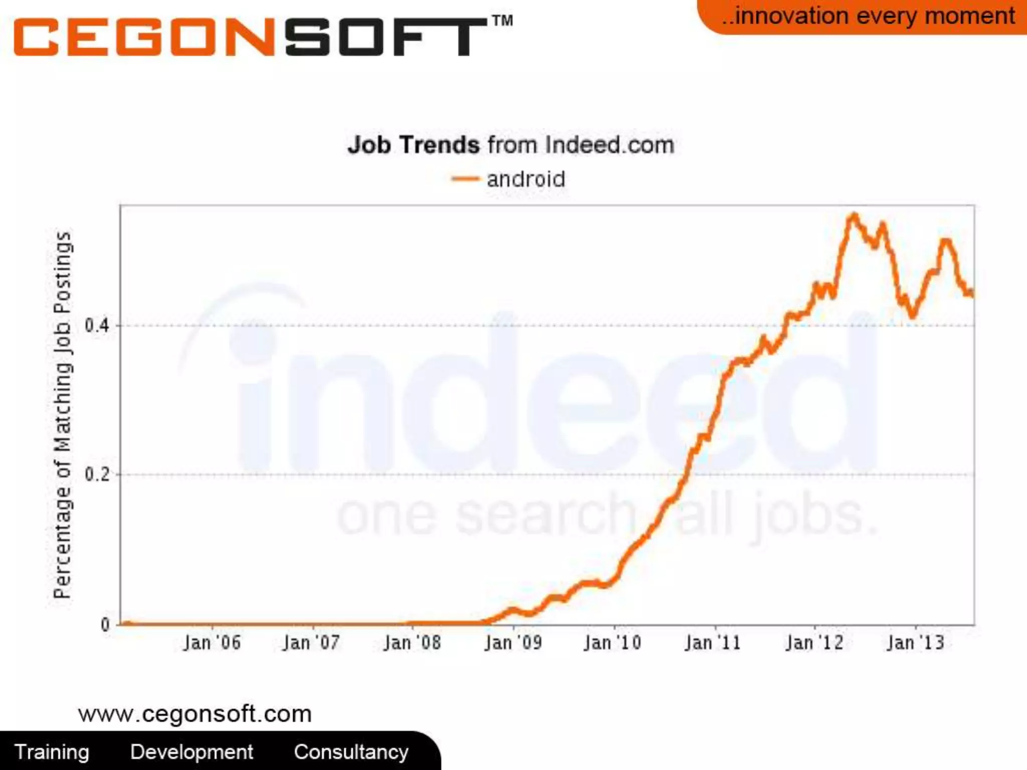 Android is an open-source operating system used widely in smartphones. It is based on Linux and allows developers to create applications using Java. The latest version of Android is called Jelly Belly. There is high demand for Android developers as applications are needed for entertainment, games, and work. Android runs on devices of all sizes, features, and prices which has led to its widespread use worldwide and opportunities for developers and manufacturers.