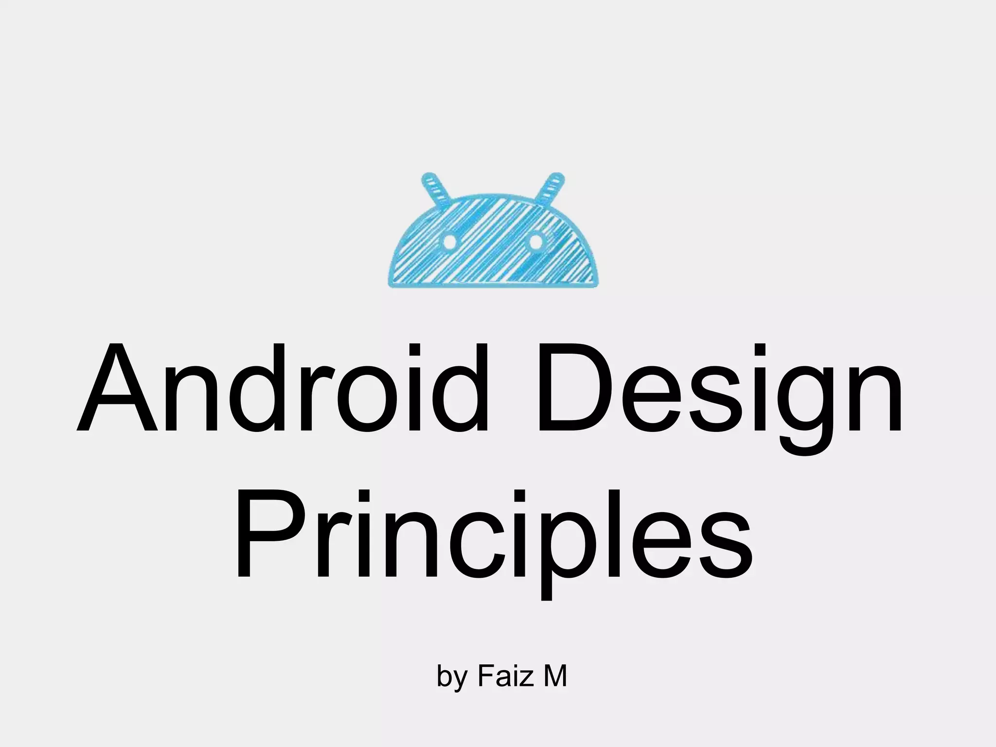 The document outlines key principles for Android design, emphasizing user engagement and simplicity. It highlights the importance of personalized experiences, intuitive navigation, and efficient functionality. Additionally, it briefly mentions popular design patterns and techniques to enhance the user interface.