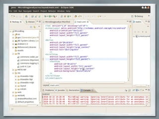 This document provides an overview of Android development and OAuth. It begins with an introduction to Android, covering what Android is, its update history, main products and system structure. It then discusses the Android development environment, essential tools, project structure and development flow. Key concepts like activities, intents and the activity lifecycle are explained. The document also introduces OAuth, providing examples of how it allows users to grant access to private resources without sharing credentials. It discusses some debates around OAuth 2.0 and concerns about its lack of signatures and cryptography.