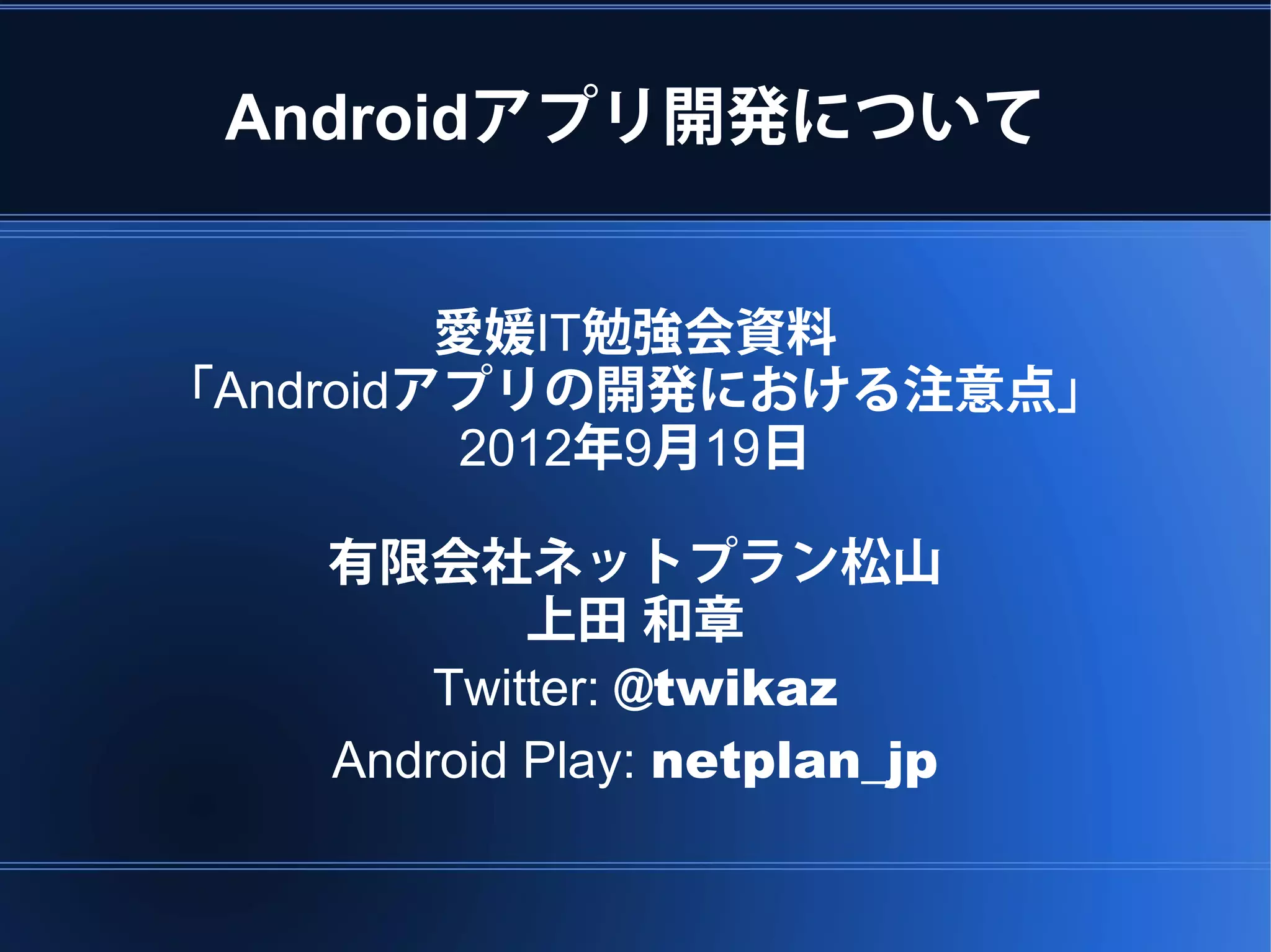 Android Develop presentation on 19 Sep 2012.