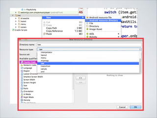 The document outlines the planning and development of a music player app for Android, focusing on features like creating a list, handling events, passing data, and implementing play/pause functionality. It covers the necessary coding steps, file structure, and common issues such as music playback in the background. Additionally, it includes links for further resources and emphasizes the importance of testing on real devices.