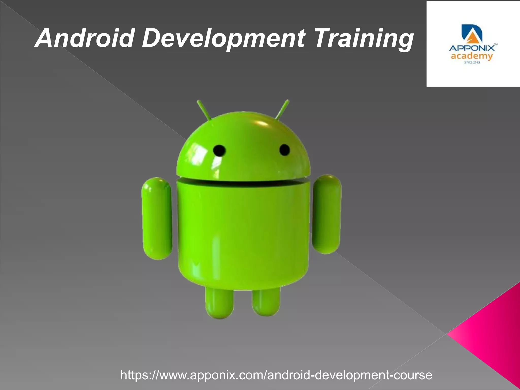 The document describes an Android development training course that covers: