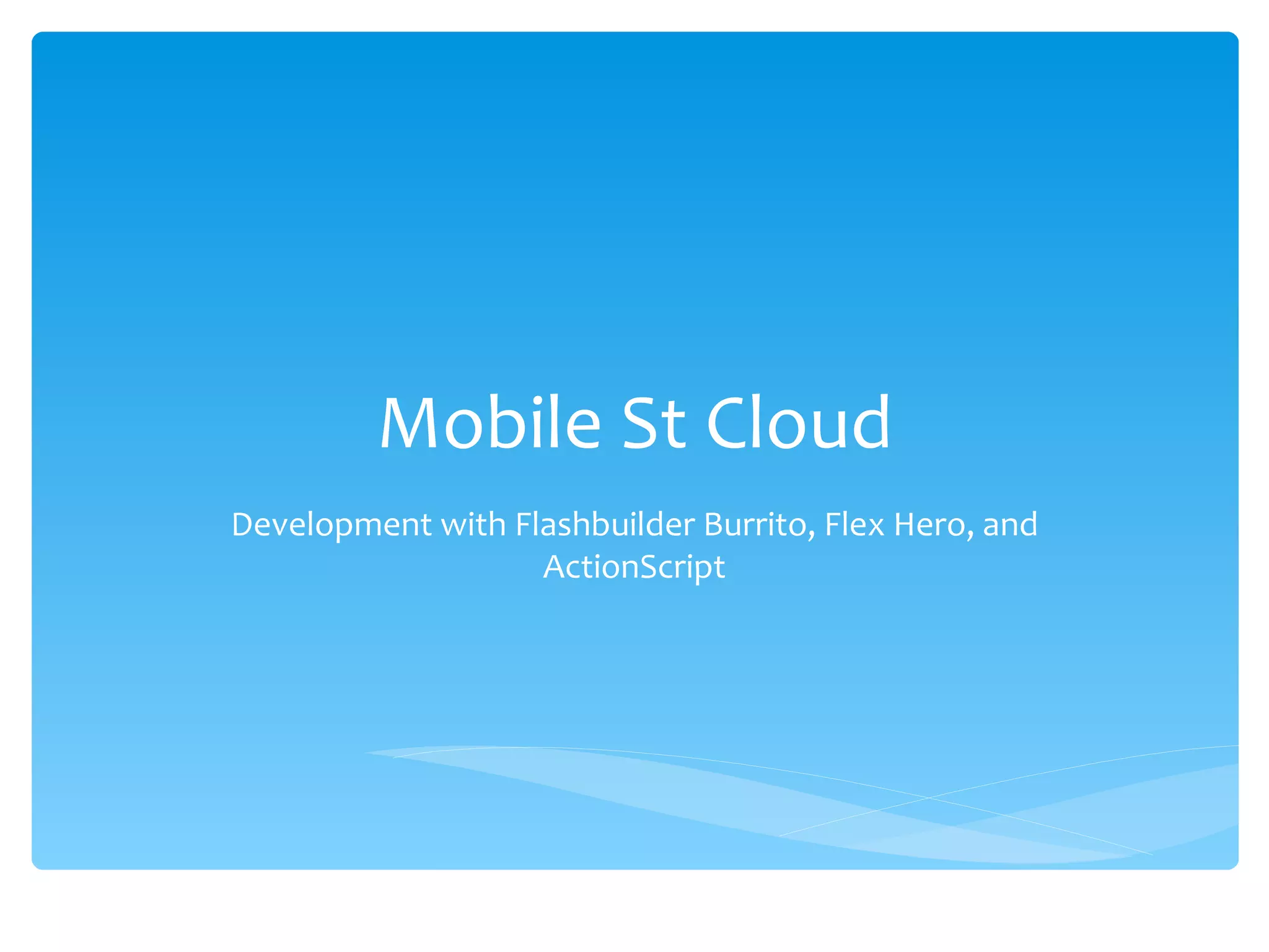 The document discusses developing mobile applications using Flashbuilder Burrito, an IDE based on Eclipse, and covers topics such as setting up the development environment, creating projects and views, adding navigation, styling, optimizing applications, and using animations. Permissions, controls, lists, item renderers, and debugging on devices are also covered at a high level. The presentation aims to get the audience excited about mobile development with Flashbuilder Burrito and ActionScript.
