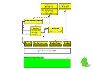 The document provides an in-depth analysis of the Android inter-process communication (IPC) mechanism, focusing on the Binder framework, which is crucial for enabling communication between different processes. It discusses the various IPC design patterns, the history and internals of the Binder, and how it efficiently manages requests, data serialization, and security. Additionally, the document examines different types of service interactions within the Android platform using Binder and highlights its advantages and limitations.