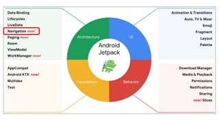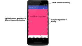 The document discusses Android Jetpack Navigation and best practices for applying it. It introduces key concepts like destinations, actions, the NavController, safe args plugin, and deep linking. It emphasizes principles like using the back button and up button properly, defining a navigation graph with fragments/activities as destinations and connections as actions, navigating via the NavController, and passing arguments safely between destinations with the safe args plugin. The document concludes that following these practices helps developers build apps that apply navigation best practices.