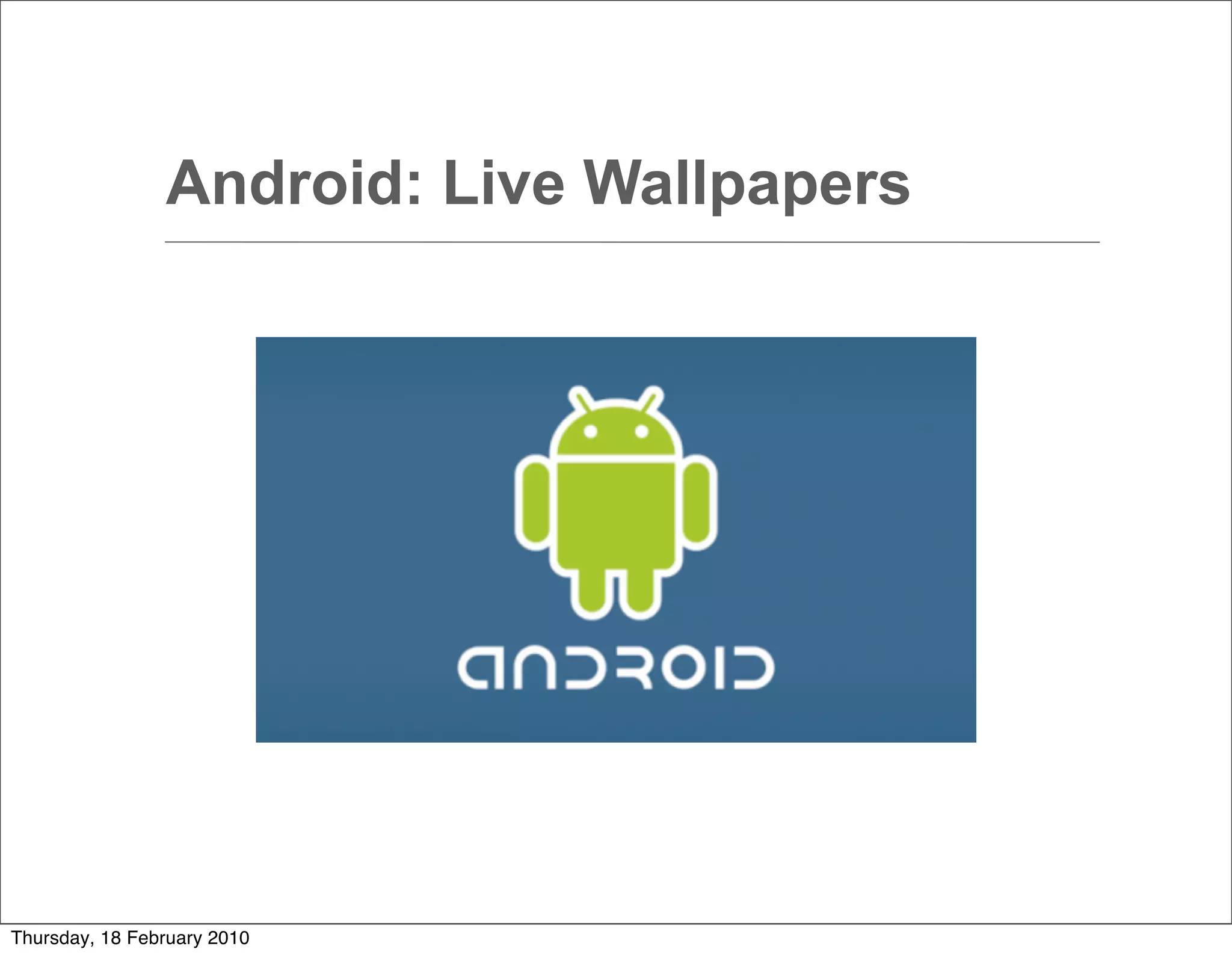Live wallpapers allow users to set animated, interactive backgrounds on their Android home screen. They are built as services that render on the desktop. Developers need the Android SDK 2.1 or higher to create a live wallpaper service that overrides the onCreateEngine method and handles lifecycle callbacks like onVisibility to optimize for performance and battery usage.