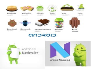 Android is a mobile operating system based on the Linux kernel that was developed by Andy Rubin and his team. Google purchased Android in 2005. It has grown to become the most widely used mobile operating system in the world, powering 78% of all mobile device sales. Android offers advantages like access to millions of applications, support for advanced media formats, and an easy application development process using Java. However, it also faces limitations like attracting hackers due to its open source nature and higher battery usage compared to other systems.