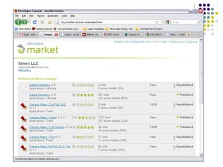 This document provides an overview of the Android mobile operating system. It discusses why mobile app development is growing in popularity, including the expanding smartphone market and high demand for developers. It then explains why Android is a good platform, noting its open source nature, wide adoption, and ability to leverage existing Java skills. The document outlines the history and evolution of Android from 2005 to present. It provides illustrations of different Android device types and describes the key components and architecture of the Android software stack. Overall, the document gives a high-level introduction to Android and its potential for mobile app development.
