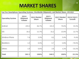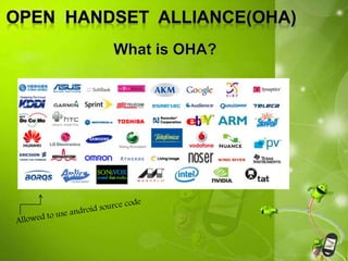 This document discusses Android, an open-source operating system for mobile devices. It provides an overview of Android's history and development, key features like connectivity, media support and hardware integration. The document also compares Android to other mobile operating systems like iOS and highlights Android's versions from 1.0 to 4.4 KitKat. It briefly touches on Android's limitations around security and battery life as well as its future scope in areas like improved mobile internet and potential new versions.