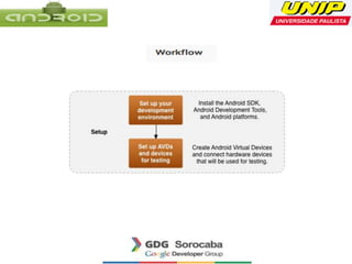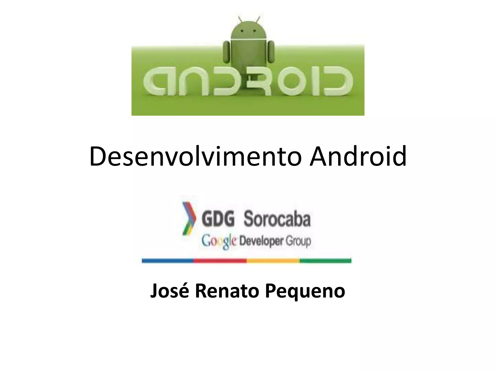The document provides contact information for José Renato Pequeno, an Android developer. It lists his email, Twitter handle, and LinkedIn profile. It also includes the main Android developer website URL.
