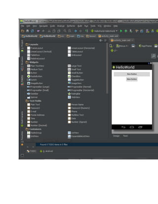 1. The document describes how to build an image gallery using an Android GridView. It involves adding a GridView to the layout, defining the grid item layout with an ImageView and TextView, creating a GridView adapter, setting the adapter, and handling clicks to open a detail activity.