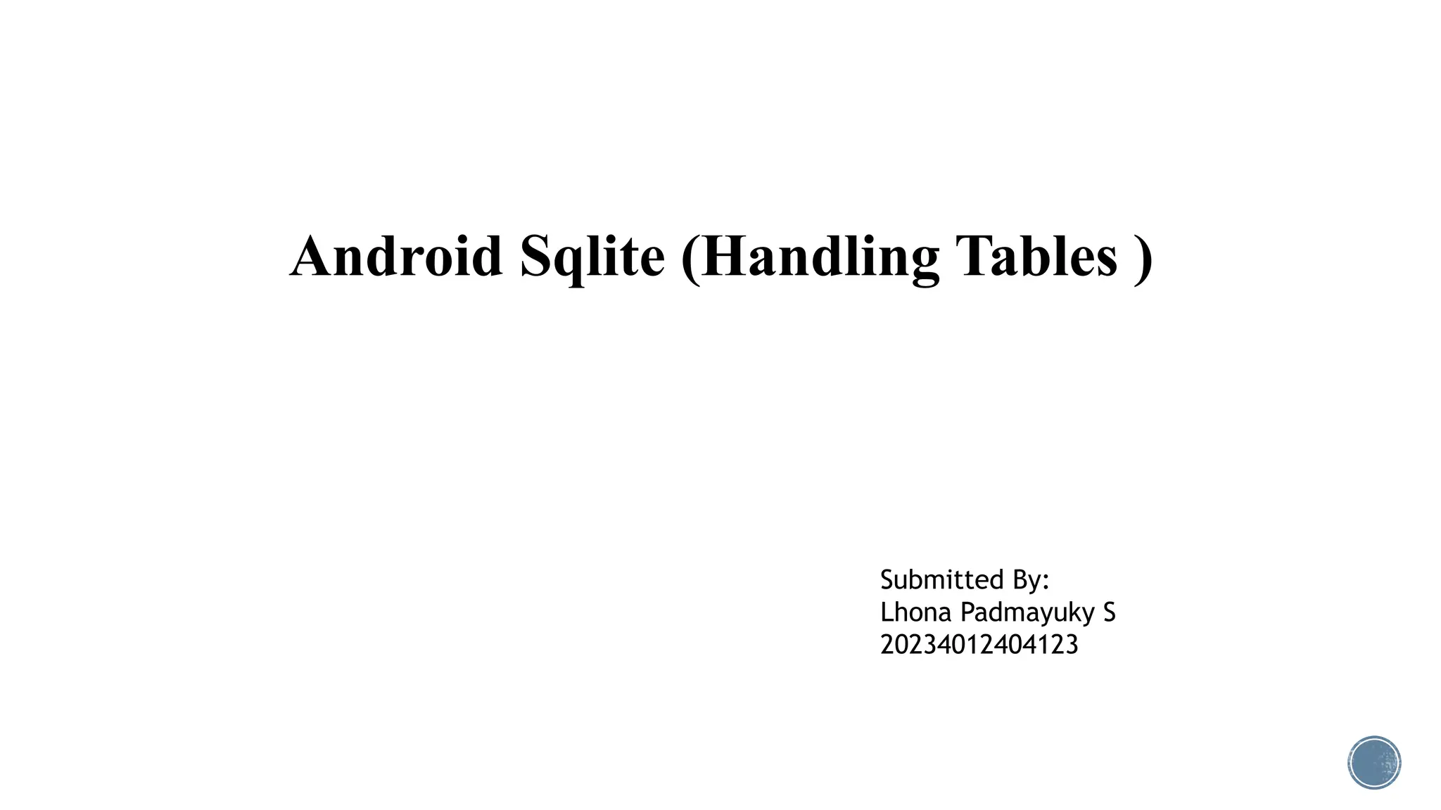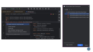 The document details how to develop an Android application using SQLite to perform CRUD operations on student details, such as inserting, updating, and deleting records. It outlines the structure of classes, methods, and XML layout for the user interface, specifically focusing on how to implement database interactions using SQLiteOpenHelper. Key components include creating a database helper class, defining the main activity, and linking the user interface elements to the Java code.