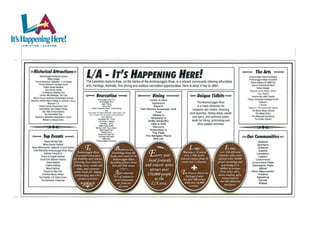 The document outlines the economic impact of tourism in the L/A area, estimating a total of $14.2 million in revenue from various sources, including lodging, dining, and arts and cultural organizations. Key contributions come from events like the balloon festival and festivals like the Bates dance festival. The document calls on elected leaders to recognize and actively support the community's tourism assets.