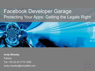This document provides guidance on legal and policy issues to consider when developing and marketing apps on Facebook. It outlines things developers should and should not do related to content and functionality, privacy, marketing, and ongoing compliance. Facebook reserves the right to change its platform guidelines with continued use constituting acceptance of changes. Developers are given notice of changes and opportunities for feedback depending on the size of their app user base.