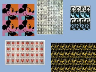 Andy Warhol (1928-1987) was an American artist known for his pop art works that used bright colors and repeated images of popular icons and figures from mass media. Some of his most famous works include Eight Elvises, which depicted Elvis Presley in different poses, and his silkscreen paintings of Marilyn Monroe. Warhol used techniques like silkscreening to create his art, which often featured primary colors and reproduced images from popular culture to comment on consumerism and celebrity.