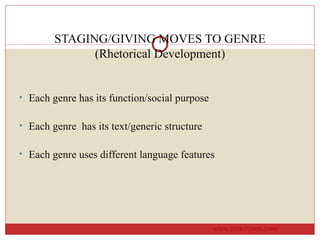The document discusses the text type of anecdote. An anecdote is used to share an account of an unusual or amusing incident with others. It typically follows the structure of abstract, orientation, crisis, reaction, and coda. Anecdotes use language features like action verbs, exclamations, and temporal conjunctions. The document provides an example anecdote about a plumber who was previously a doctor.