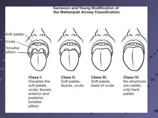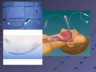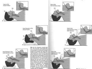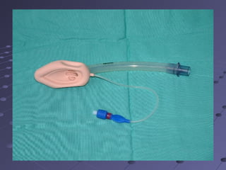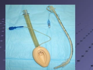 The document discusses basic airway management techniques. It describes problems that can arise when using manual airway maneuvers or basic airway devices like oropharyngeal or nasopharyngeal airways. The laryngeal mask airway and tracheal intubation are introduced as techniques that can overcome these problems and better secure the airway. Detailed information is provided on how to use a laryngeal mask airway and perform tracheal intubation, including necessary equipment, patient assessment techniques, and proper technique.