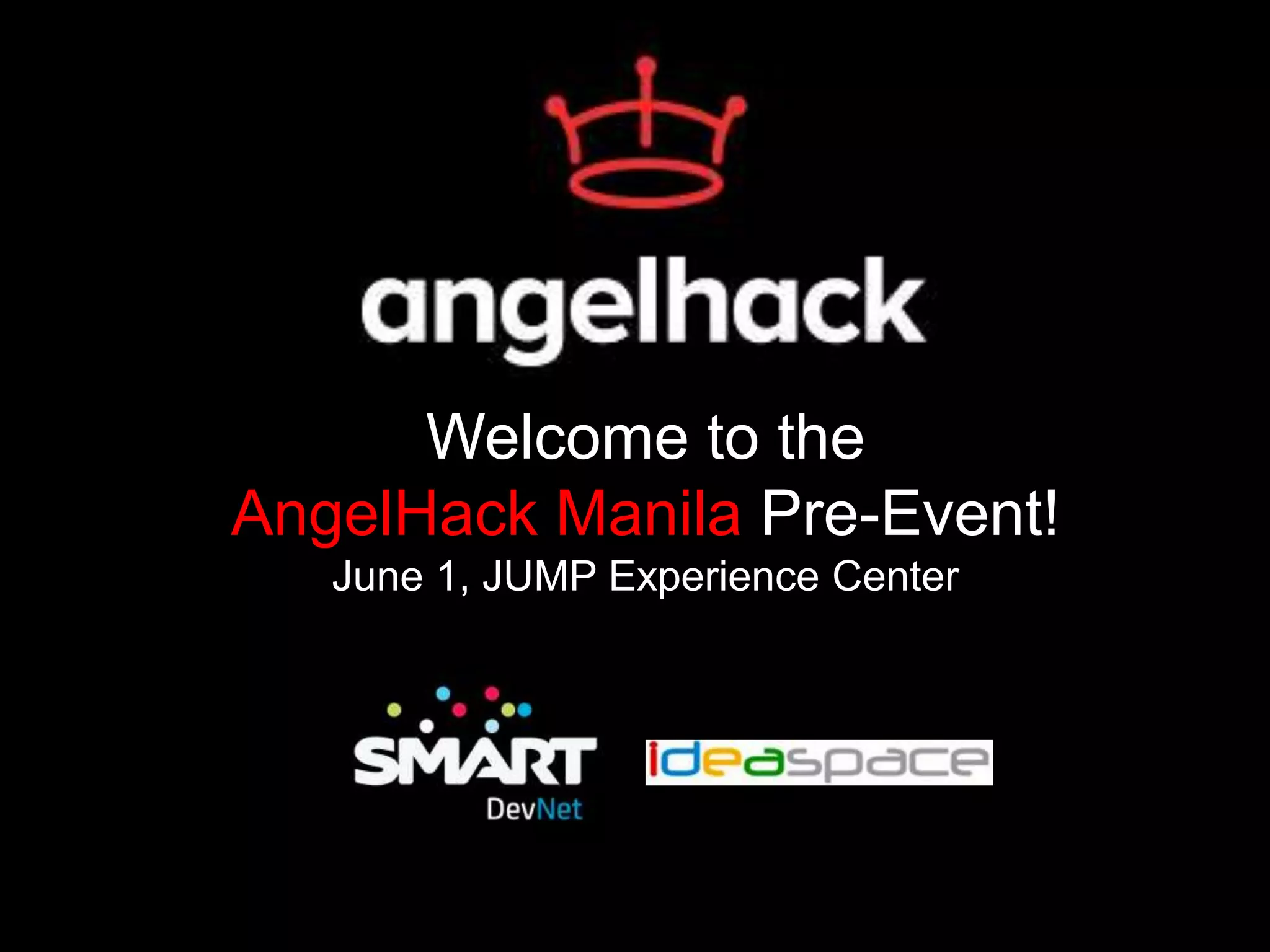 AngelHack Manila is a pre-event for the largest global hackathon taking place on June 8-9, 2013, at Voyager Innovations in Pasig. Participants will compete to build applications and have a chance to win a spot in the AngelHack accelerator program in San Francisco. The winning teams will later present at a global demo day with opportunities for further recognition and prizes.